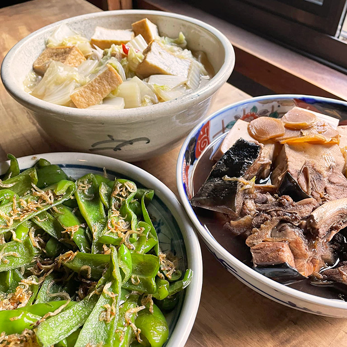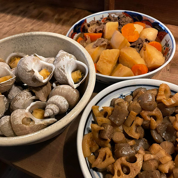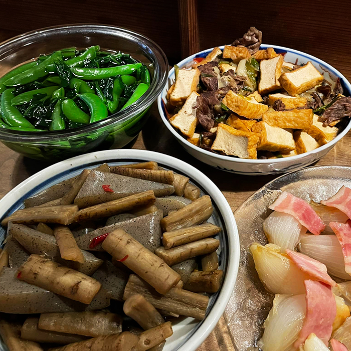 食材の旬に合わせた、酒に合う手料理をご用意しています。肉・魚・野菜、すべで店主が自分の手で仕入れいます。土曜日には広島のお好み焼きもご用意できますので、一度ご賞味ください。